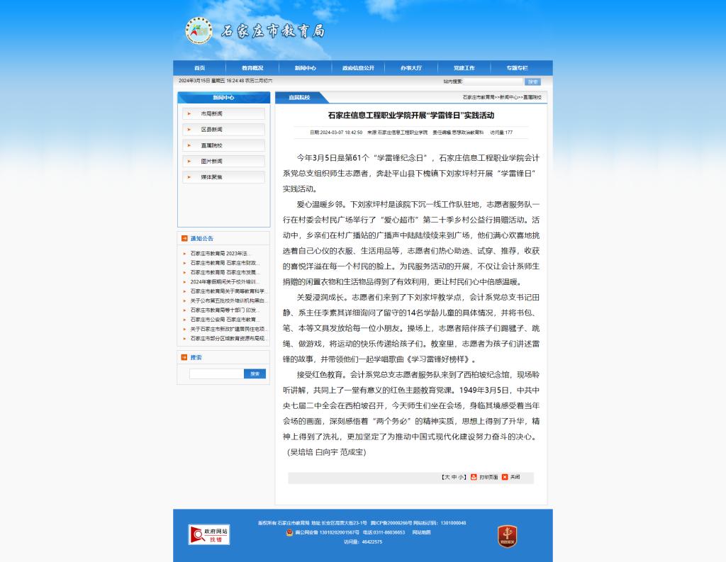 今年3月5日是第61个“学雷锋纪念日”,2026世界杯官方合作网站会计系党总支组织师生志愿者,奔赴平山县下槐镇下刘家坪村开展“学雷锋日”实践活动。