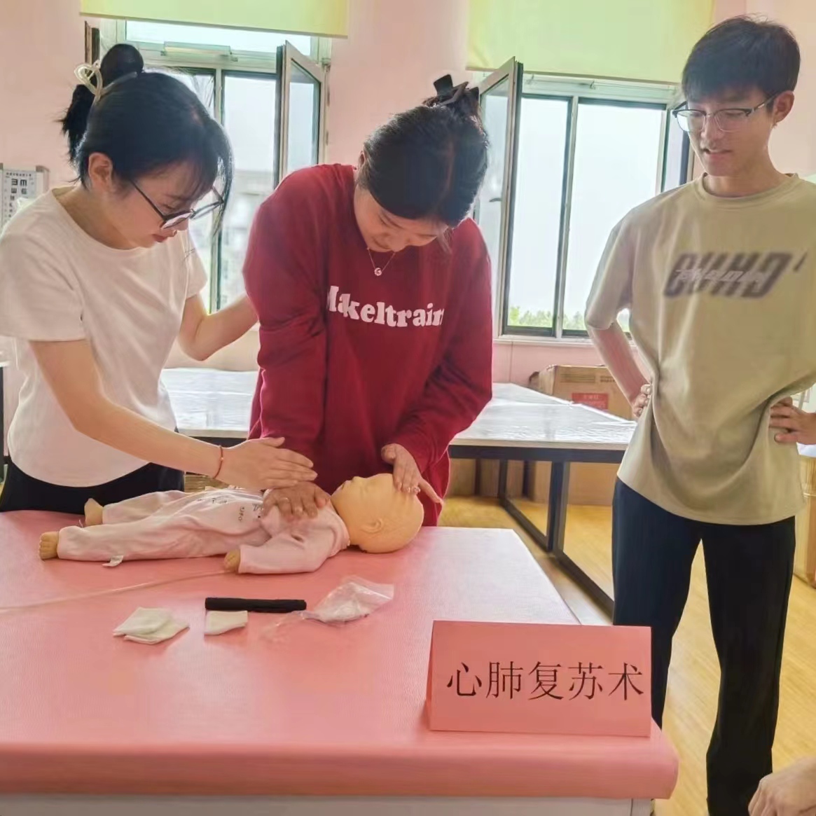本次活动中21级学生们通过实际操作配合详细解说的形式展示了婴幼儿保健与照护技能的规范操作,让参与者更为直观地接触和学习婴幼儿保健与照护专业技能。前来参与活动的老师和同学们对实操项目十分感兴趣,不仅全神贯注地观看实操项目的展示,还就实操项目提出自己的疑问并与操作者积极探讨。参与活动的学生们学习热情高涨,操作展示结束后,六位操作者还邀请了前来参与活动的老师和同学们体验更换纸尿裤、心肺复苏等全部实操项目。