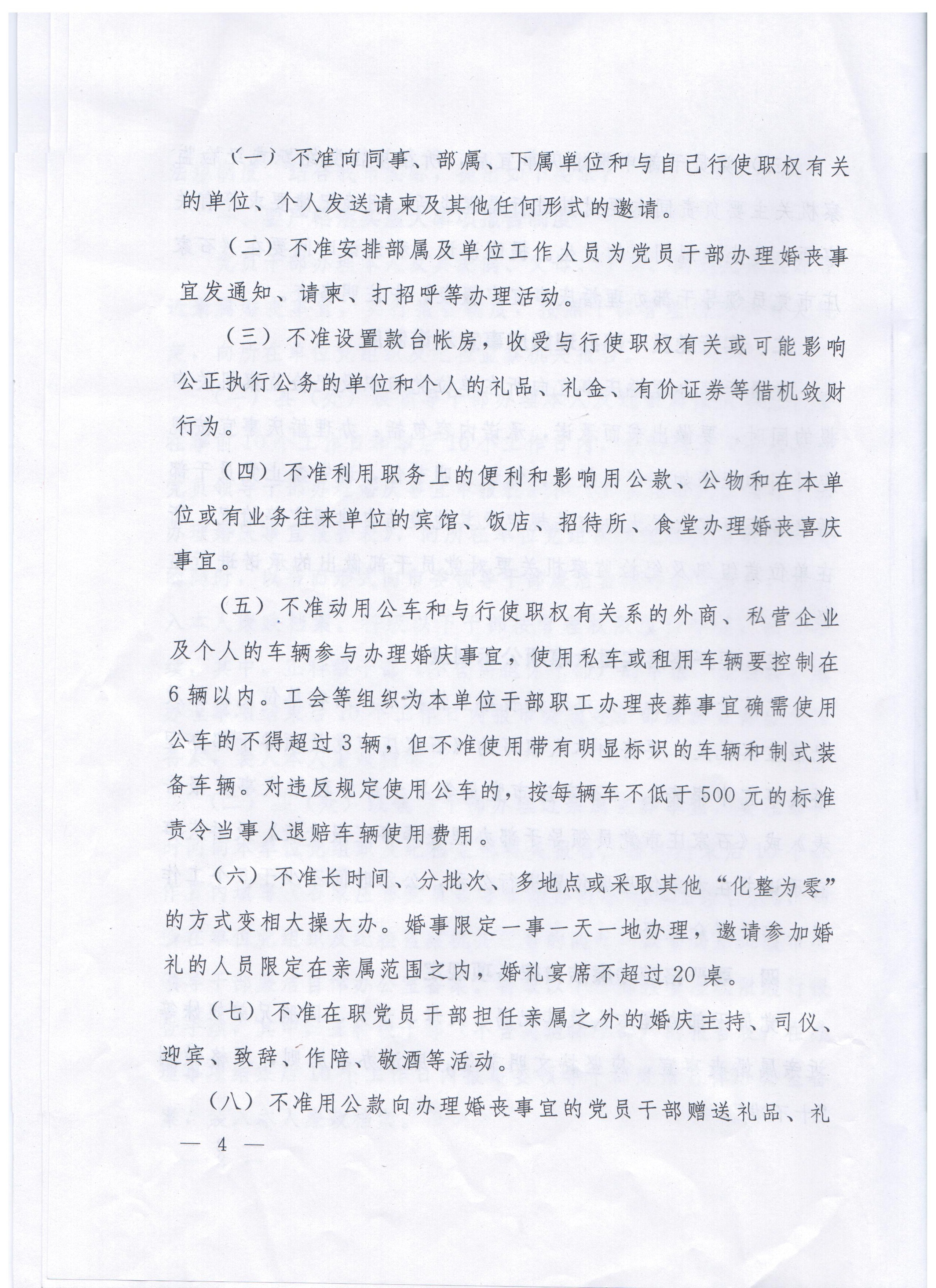现将中共石家庄市纪委《关于进一步规范党员干部婚丧喜庆有关事宜的通知》转发给你们,迅速组织本部门所有人员认真学习,贯彻落实,严格遵守。