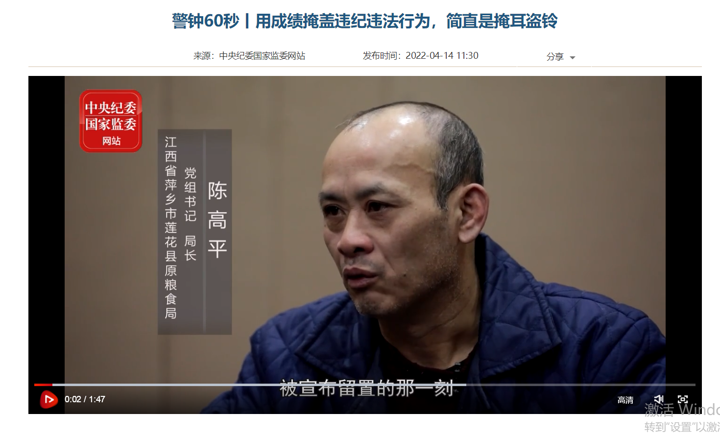 观看地址:http://v.ccdi.gov.cn/2022/04/14/VIDE0mX1FSpCXrfLfYa3RIF6220414.shtml