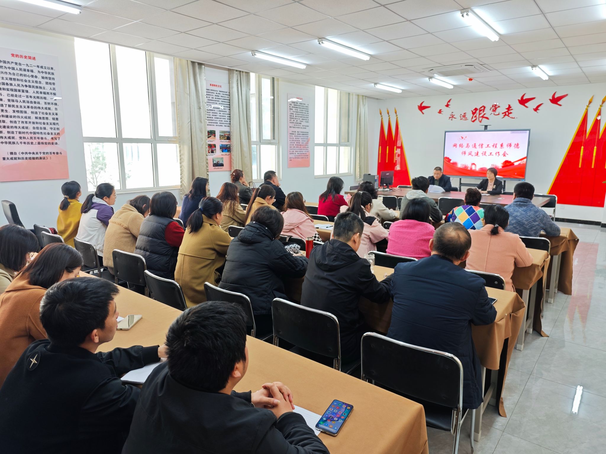 3月21日下午,网络与通信工程系在知行楼108党员活动室召开师德师风建设工作会,组织学习了河北省教育厅有关师德师风工作的文件精神和要求,通报了教育系统六起违背师德师风的案件。