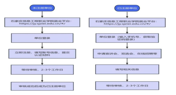 2.参会企业在智慧就业平台(地址:https://jy.sjziei.edu.cn/)选择“单位登陆”进行注册,填写认证材料。