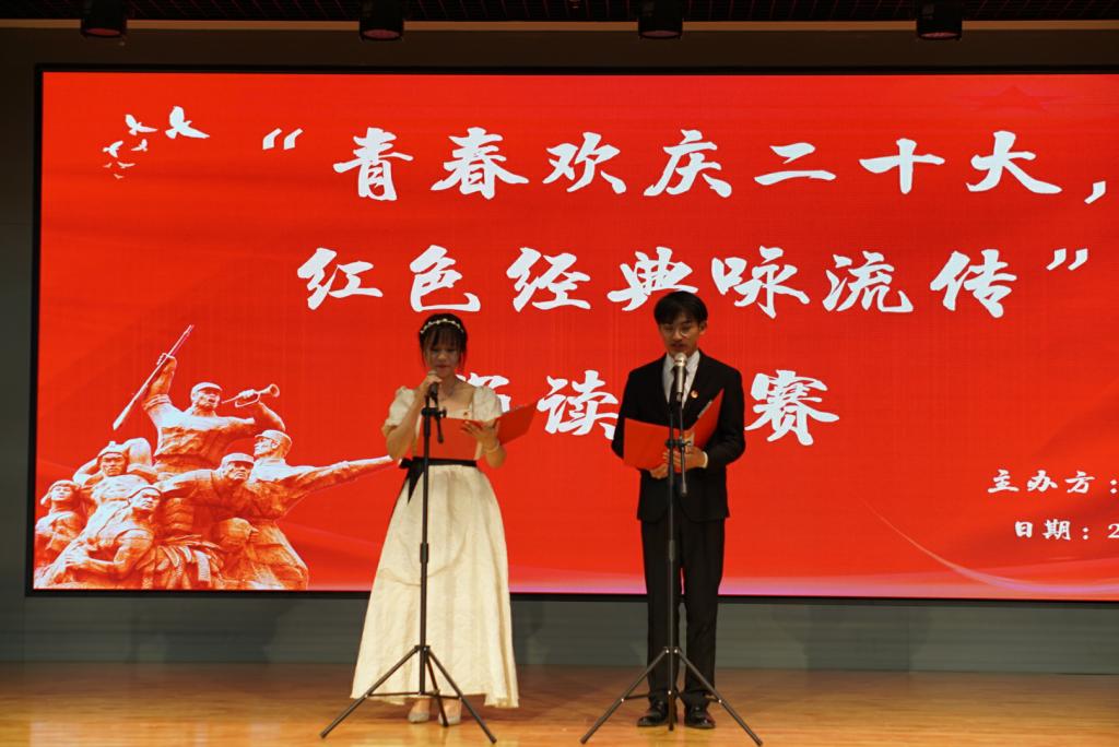 为迎接第28个世界读书日的到来,4月20日下午,图书馆联合红色文化研读社、中华文化经典诵读社、文学社举办了“青春欢庆二十大,红色经典咏流传”诵读比赛。