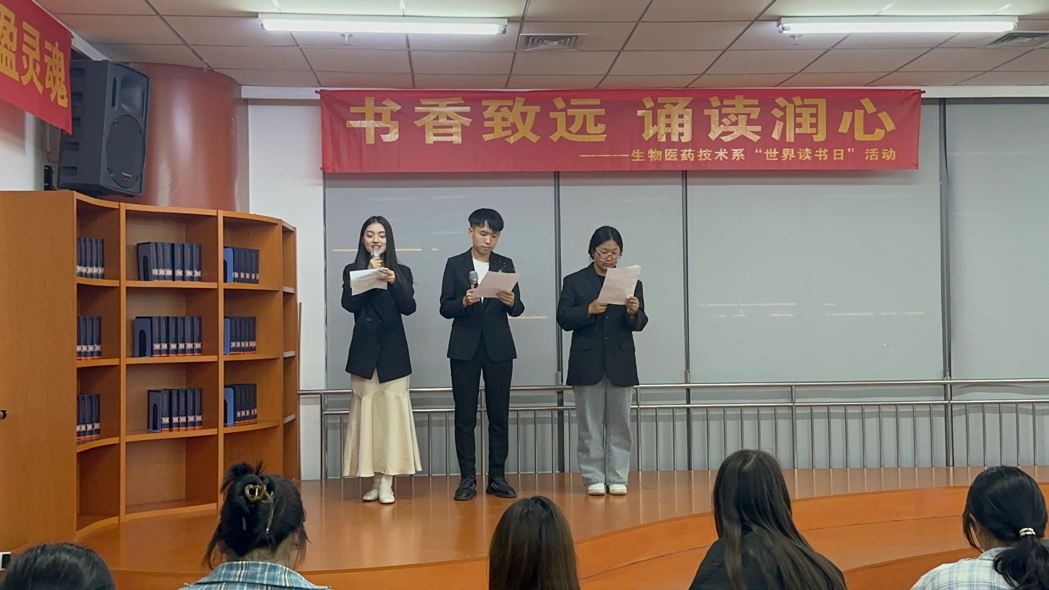 为响应第30个“4·23世界读书日”,4月23日下午,生物医药系和图书馆联合举办了传统文化诵读比赛,选手们以声为媒,以文会友,在经典诵读中奏响世界读书日的文化乐章。