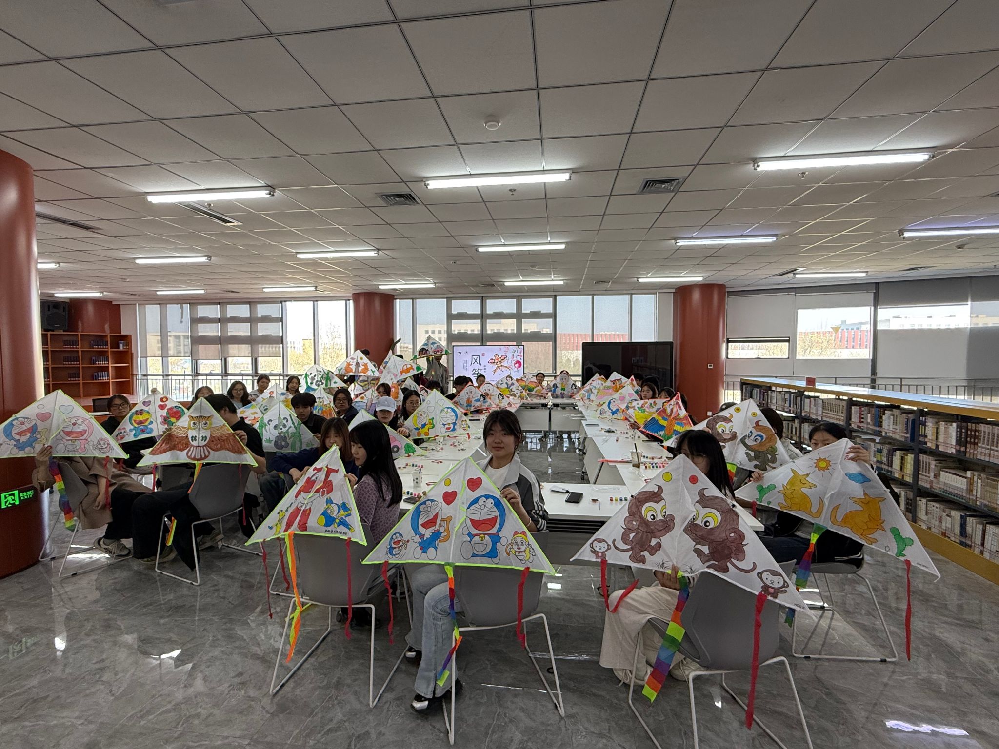 4 月 7 日下午,图书馆与传媒艺术系在图书馆二楼活动沙龙举办了风筝绘制活动。作为图书馆“人间四阅天•书香润校园”读书月系列活动的开篇之举,本次活动既丰富校园文化生活、也为传承中华优秀传统文化贡献了一份青春力量。