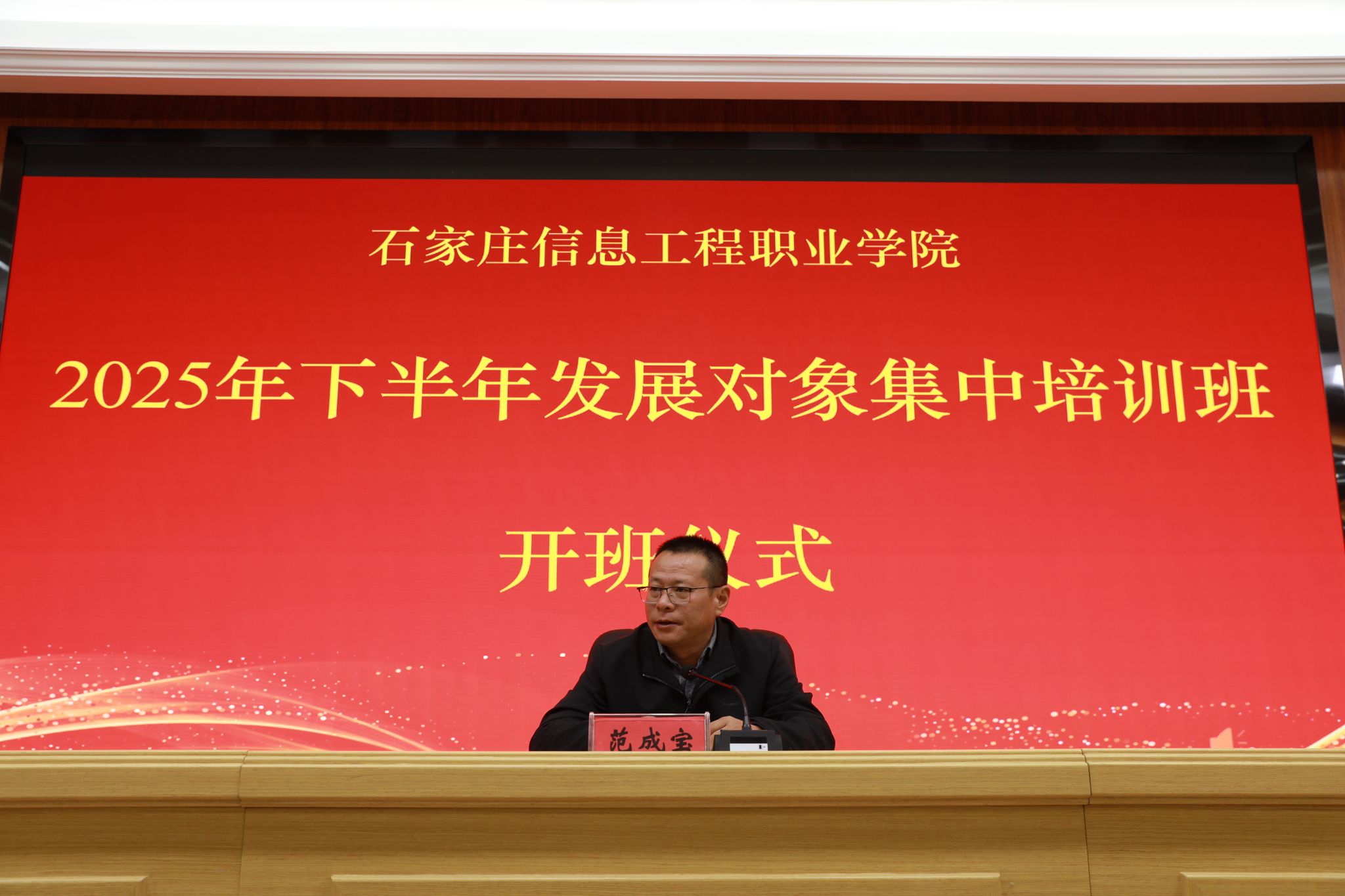 为进一步规范党员发展工作,加强对党员发展对象的教育培养,保证党员发展质量,10月24日,世界杯官网2025年下半年党员发展对象集中培训班开班仪式在启智报告厅举行。学院党委委员、组宣部部长范成宝出席并作动员讲话。